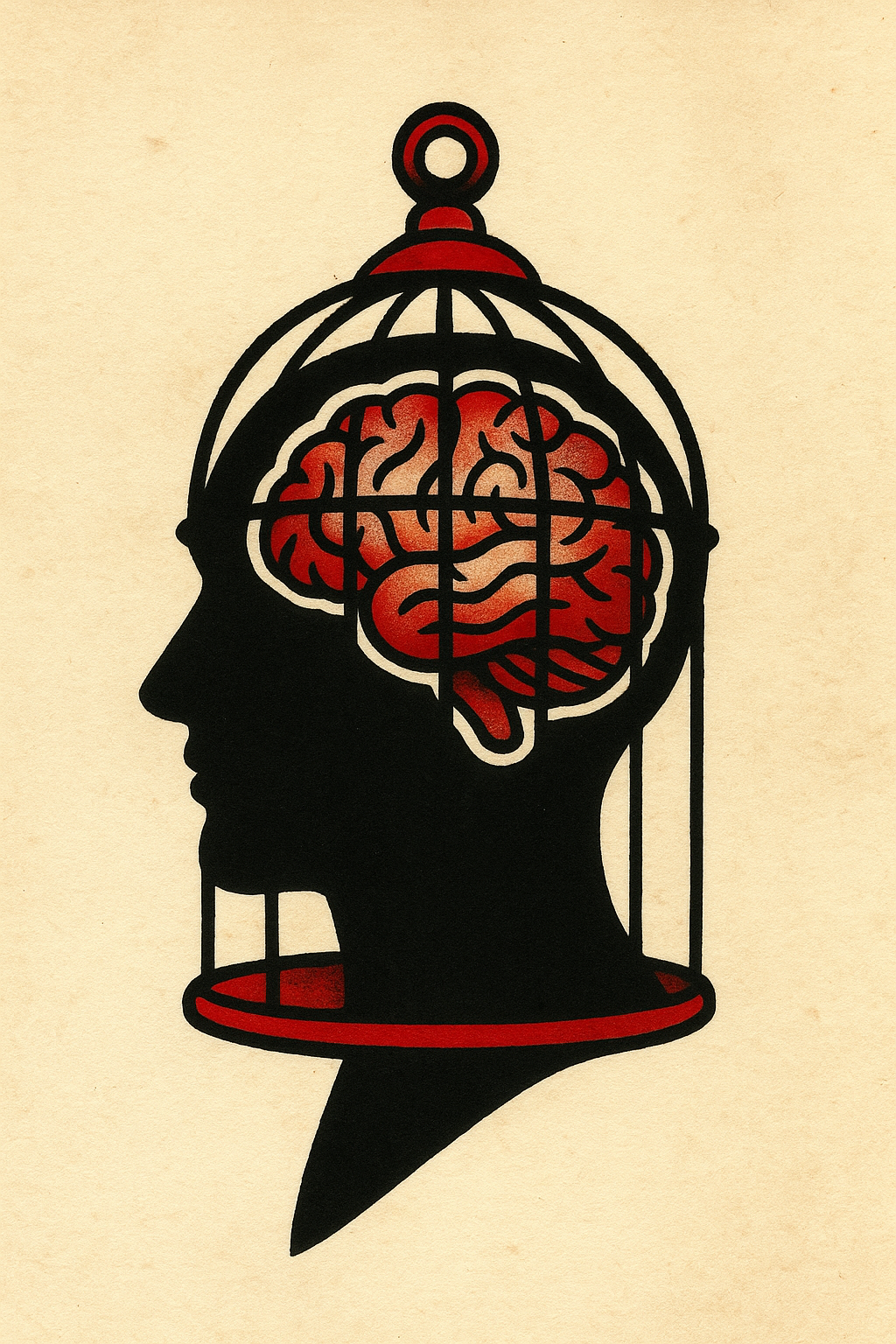 Brain in a Cage Tattoo Design Symbolizing Limiting Beliefs