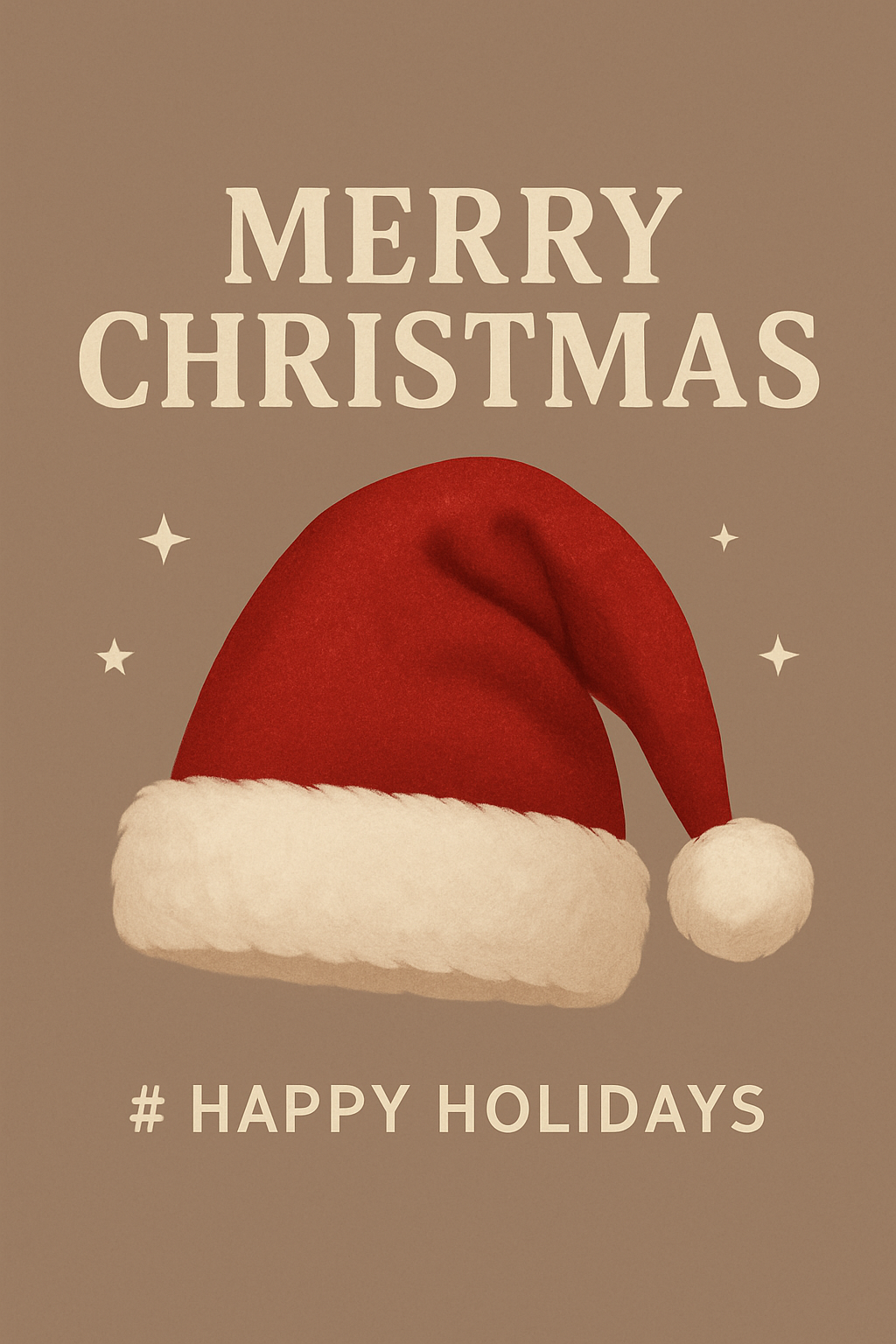 /Collection: /by davooda/Type: PNG/Charming holiday greeting card featuring a festive Santa hat and warm colors, perfect for spreading holiday cheer. Ideal for social media posts or seasonal promotions.