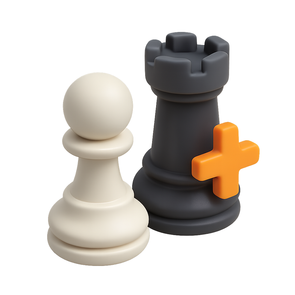 A visually appealing representation of two chess pieces: a white pawn and a dark rook, featuring a modern 3D design with volumetric effects.