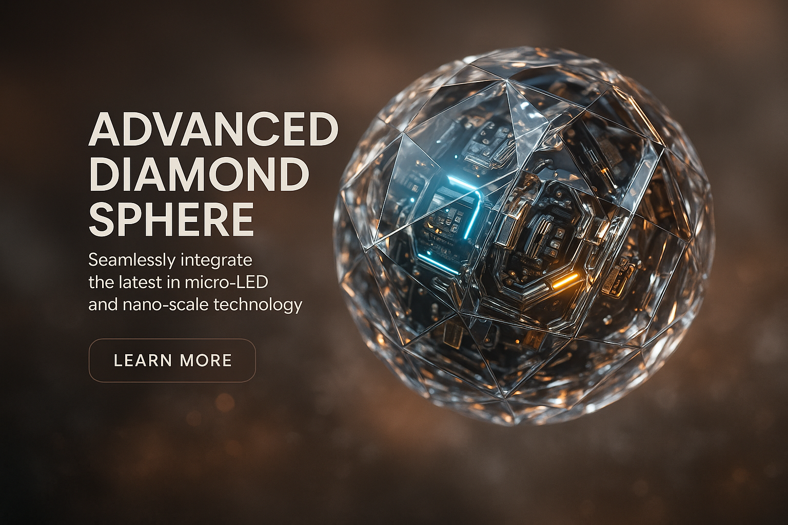 /Collection: /by davooda/Type: PNG/A hyperrealistic 3D render of a diamond sphere surrounded by a data nebula. The sphere features intricate details of glowing micro-LEDs and metallic components, illuminated by neon lights.