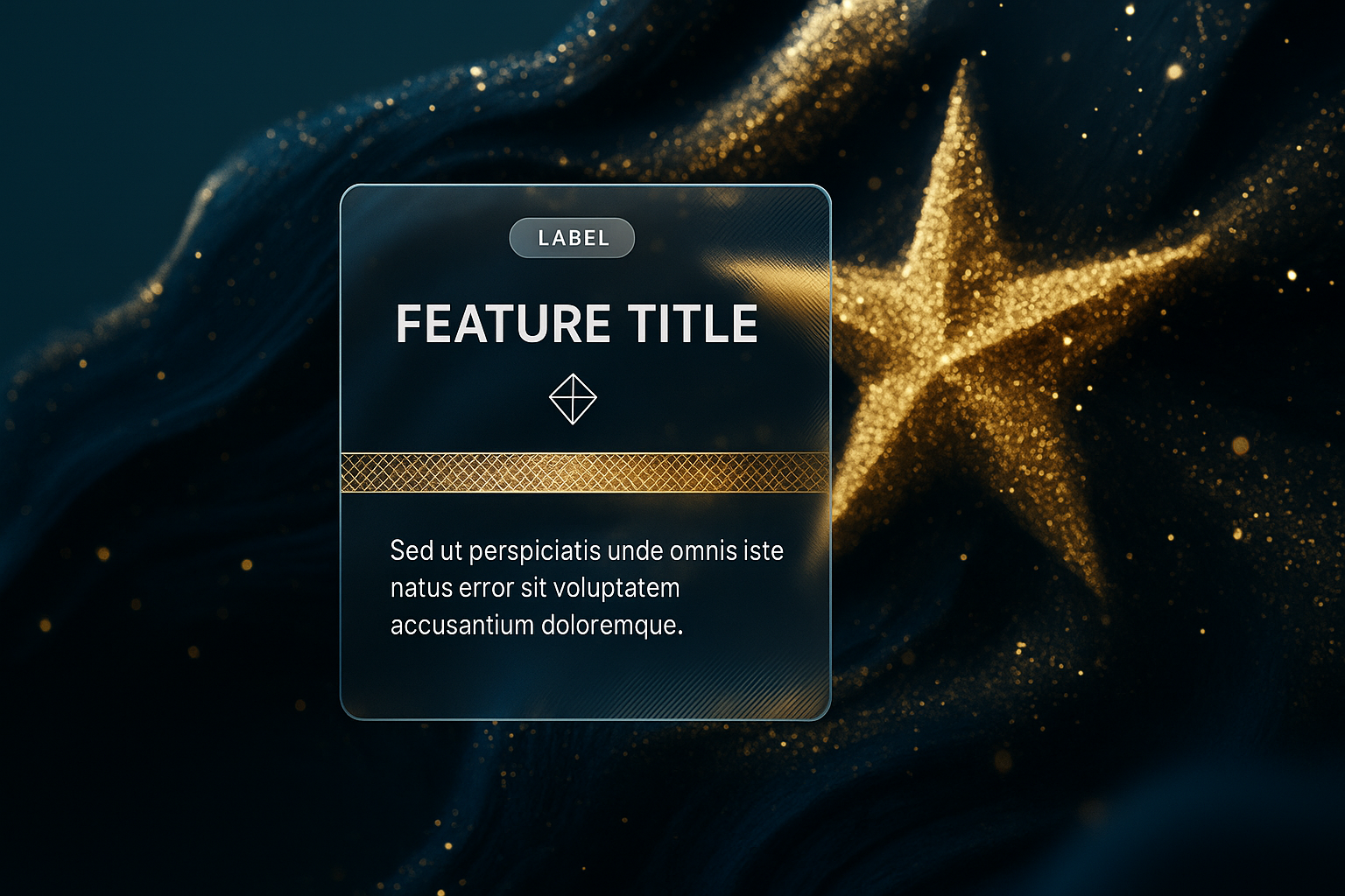 /Collection: /by davooda/Type: PNG/An abstract background featuring a dark blue and gold color palette, showcasing a star and a transparent label. The design incorporates smooth gradients and layered elements for depth.