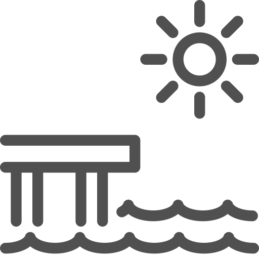 outline simple icon: dock, ocean, pier, sea travel, sun