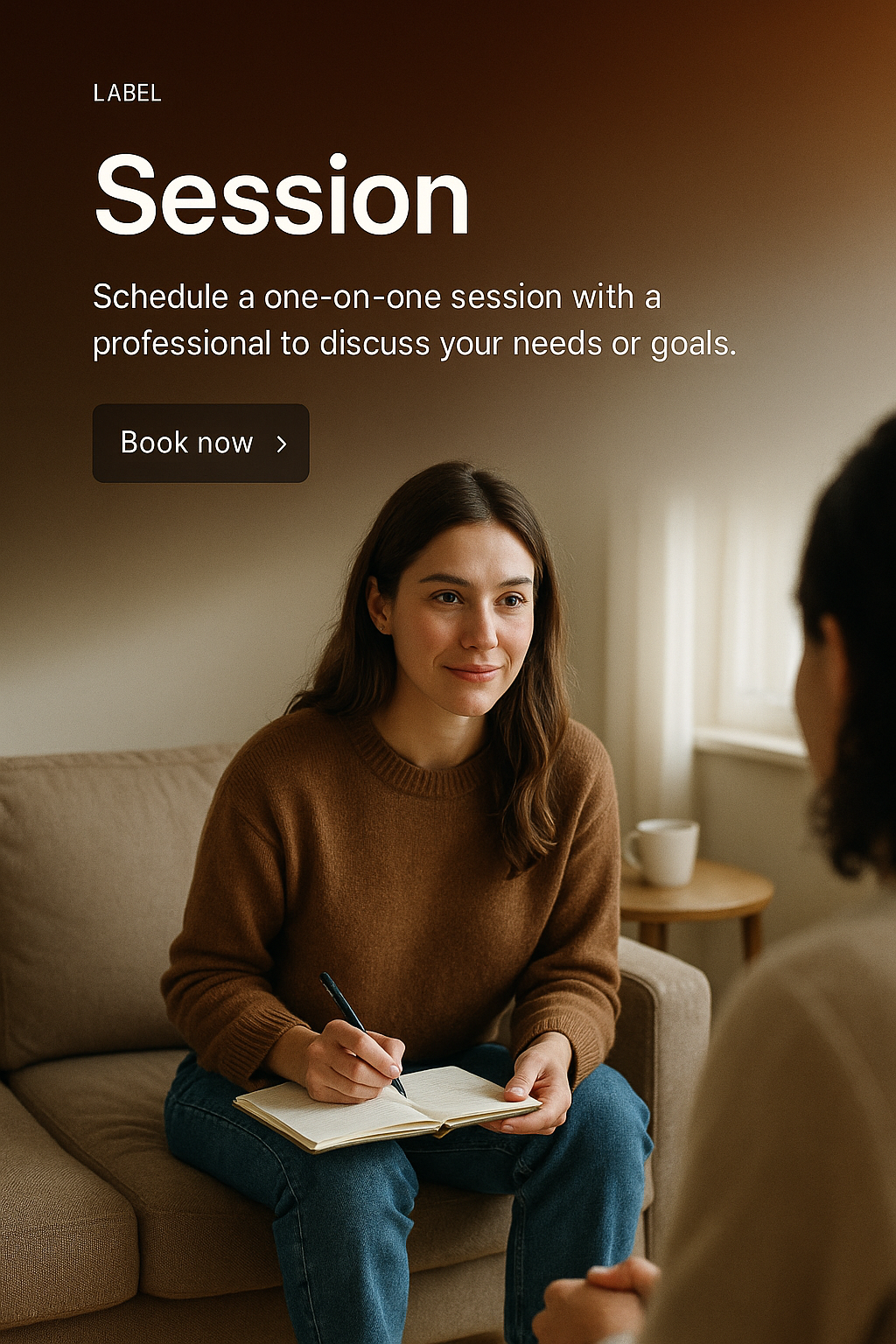 An engaging web design concept illustrating a one-on-one session, featuring a woman taking notes with a cozy background. The design includes a gradient backdrop and clear text elements.