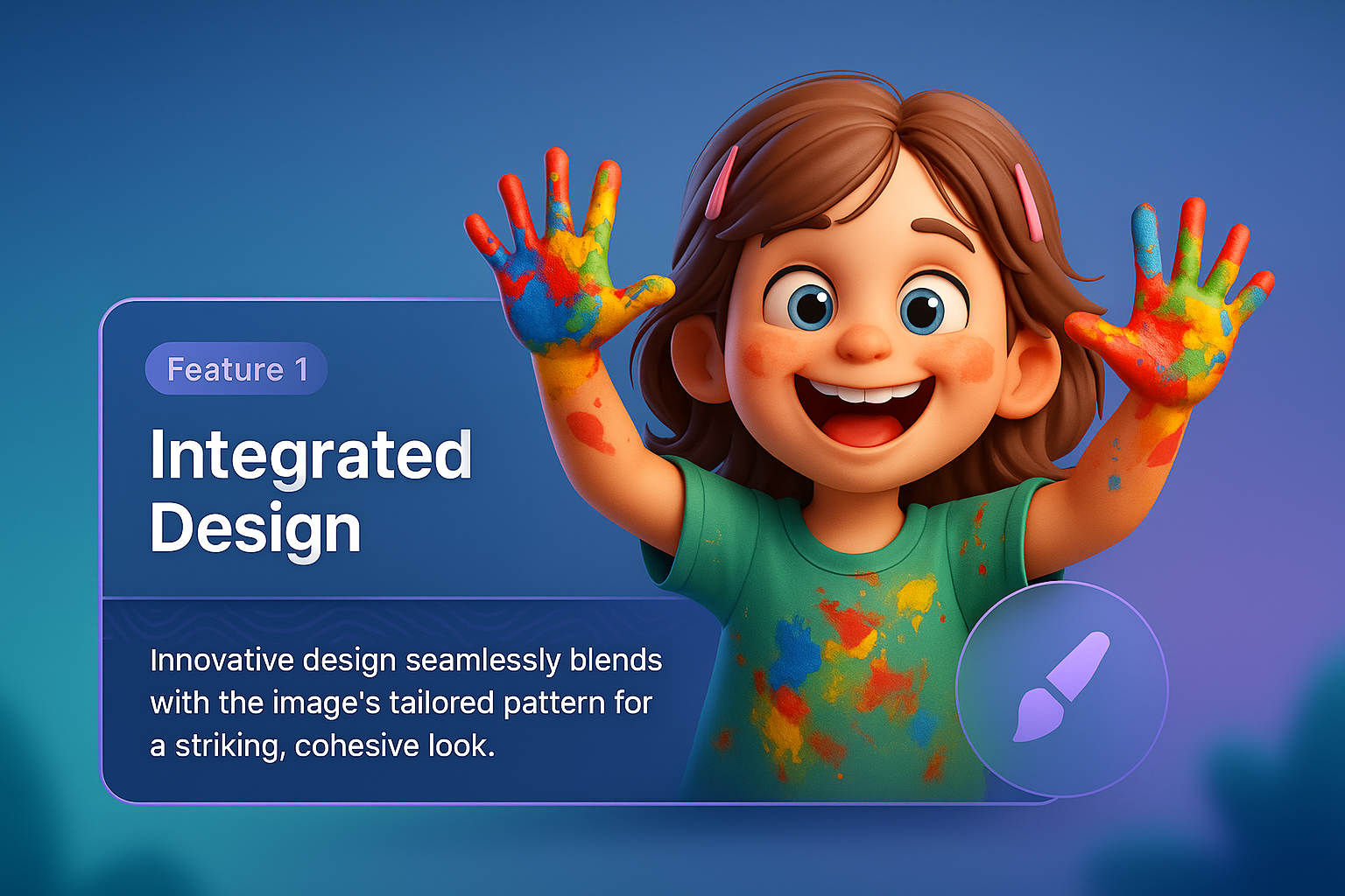 Cheerful Girl with Paint-Stained Hands in Integrated Design