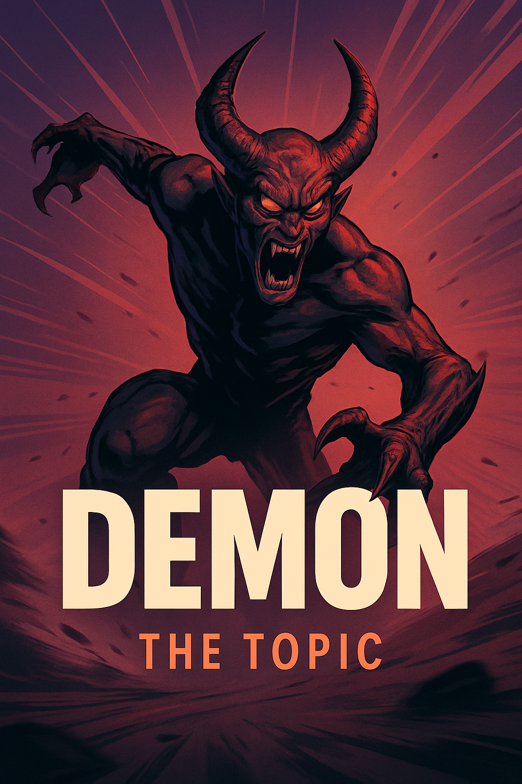 This image features a striking graphic of a demon, characterized by bold colors and dynamic motion. Ideal for horror-themed content or marketing.