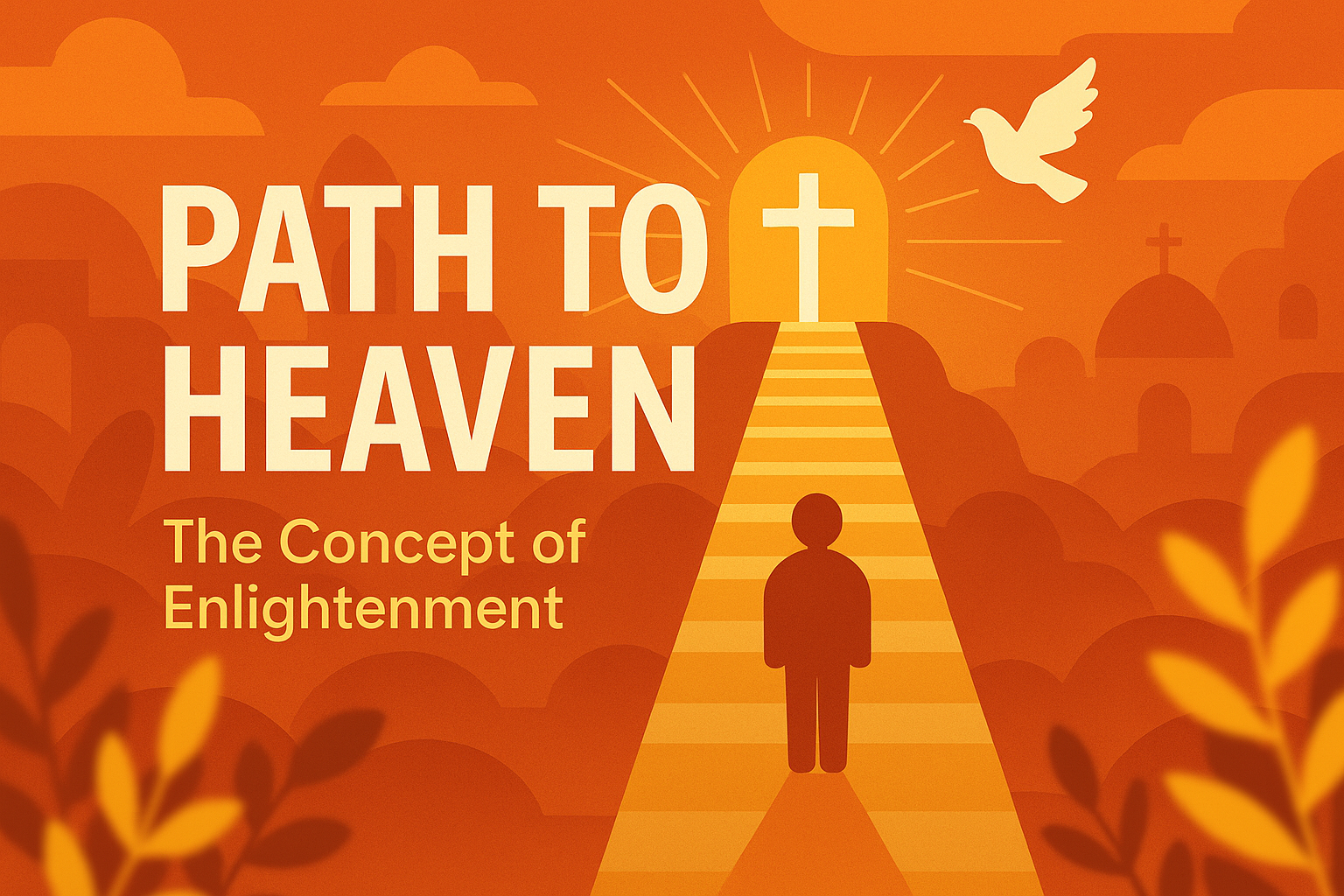 /Collection: /by davooda/Type: PNG/A visually engaging illustration representing the concept of enlightenment with a pathway leading to a glowing cross, perfect for spiritual or motivational contexts.