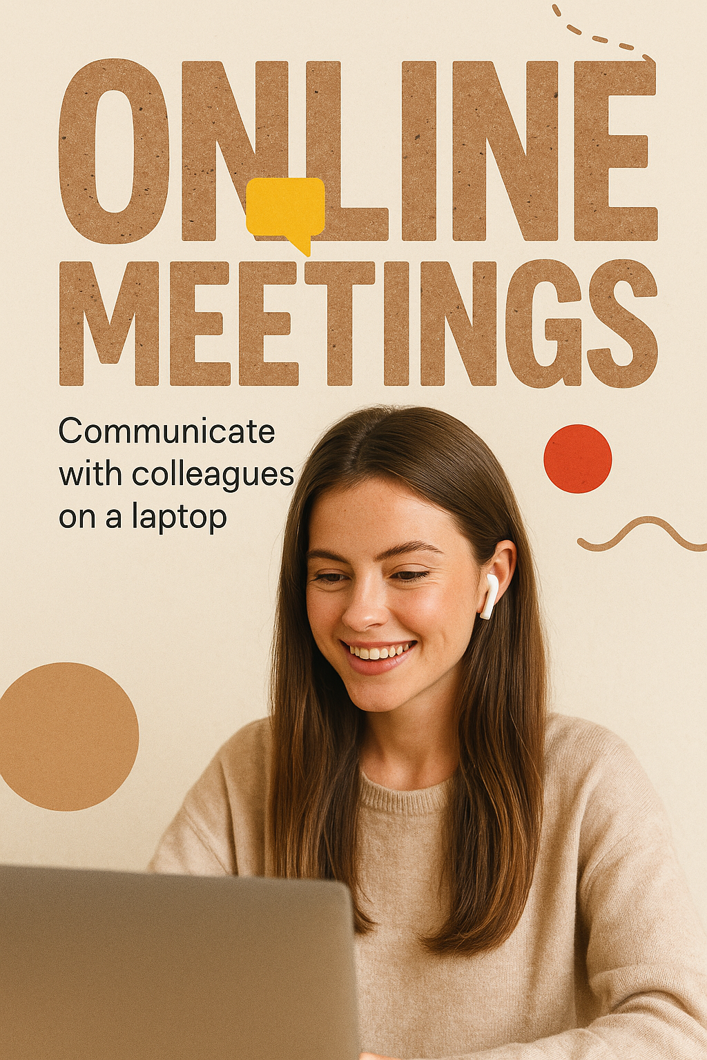 Promotional Graphic for Online Meetings Featuring a Smiling Woman