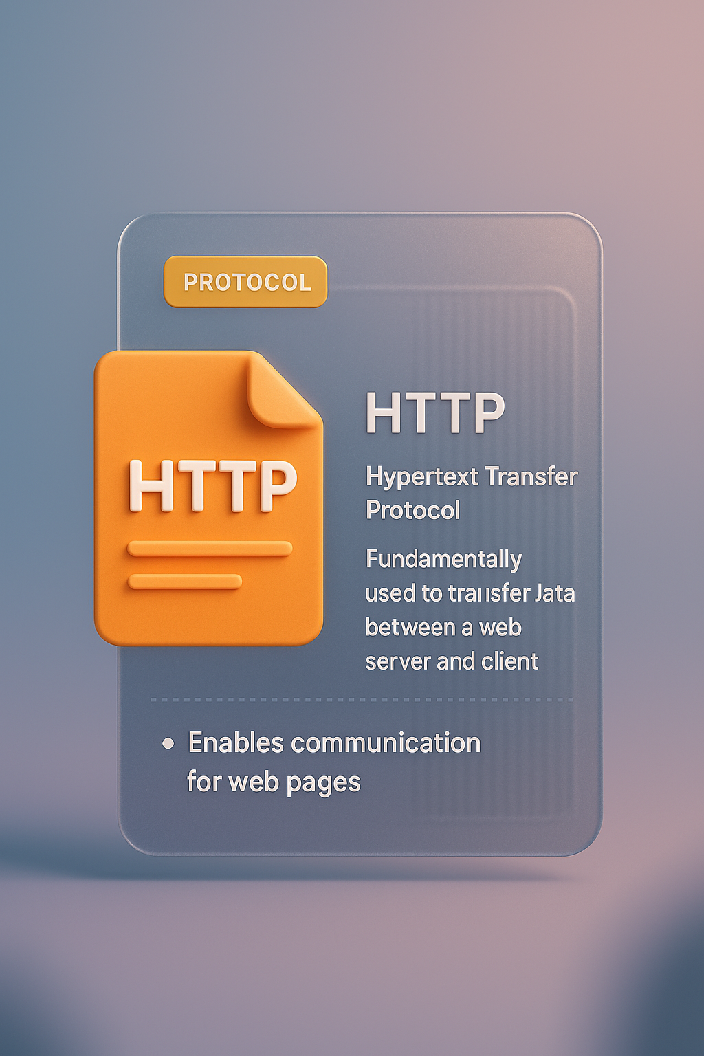 /Collection: /by davooda/Type: PNG/A visually engaging 3D illustration showcasing the HTTP protocol. It features a layered design with a gradient background, a prominent orange document icon, and clear text that communicates the function of HTTP in web communication.
