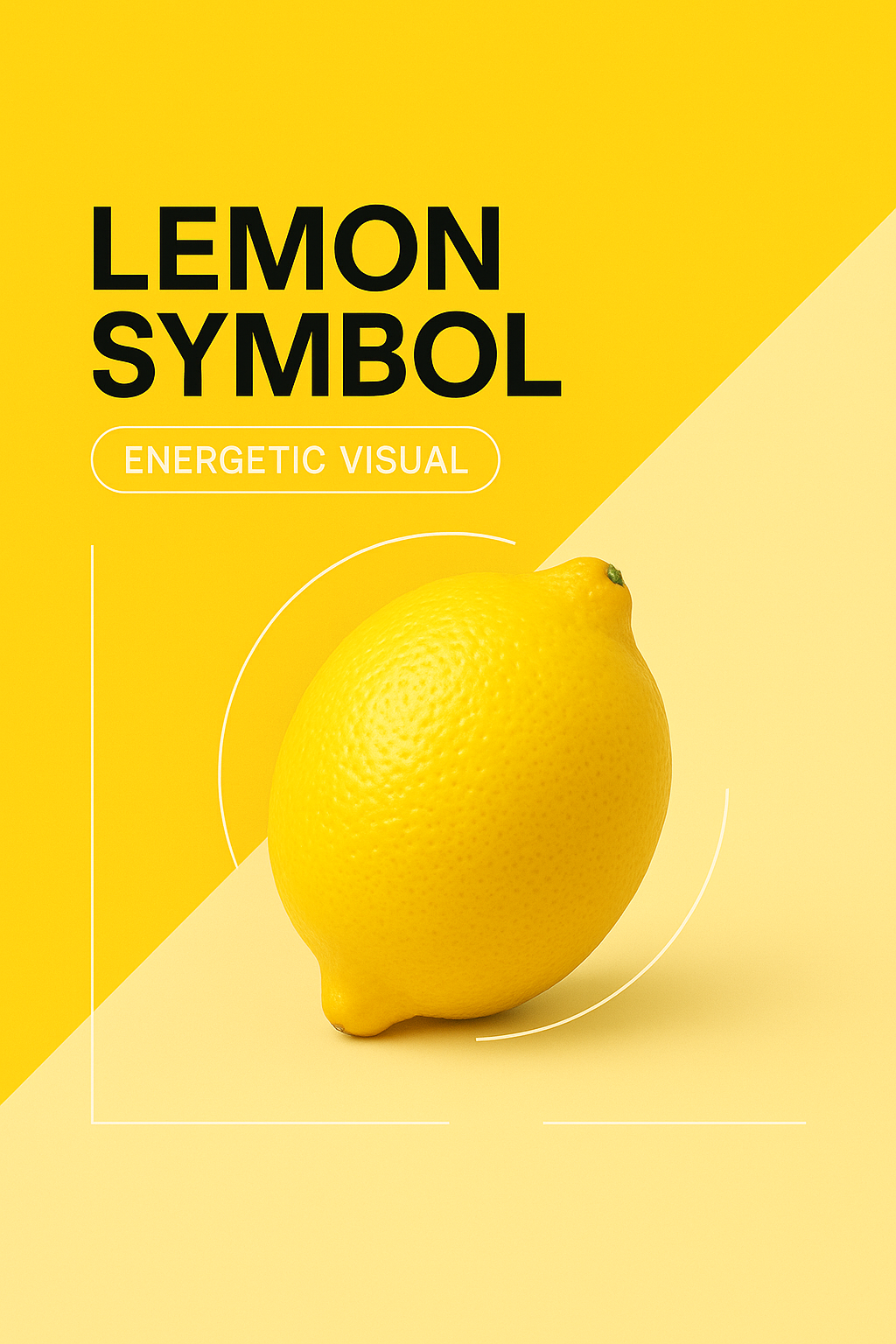 A minimalist design showcasing a bright yellow lemon against a structured background. The composition features distinct color blocks, emphasizing a clean and energetic aesthetic.