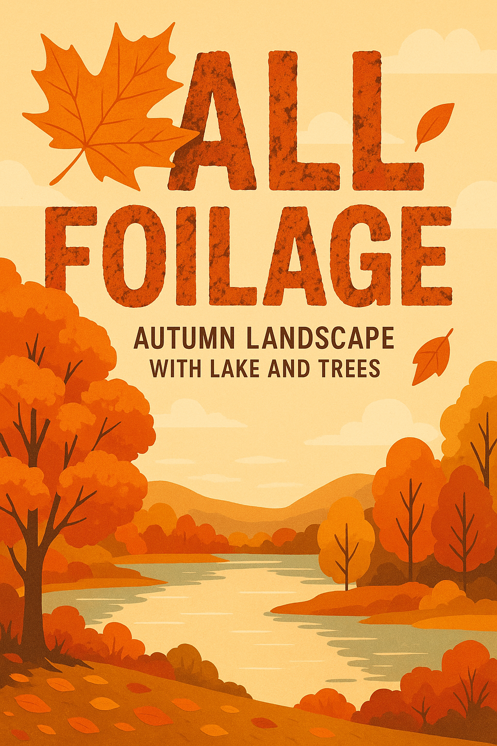 /Collection: /by davooda/Type: PNG/A colorful illustration depicting an autumn landscape featuring a serene lake surrounded by trees in vibrant fall colors. This graphic is ideal for seasonal promotions and nature-themed content.