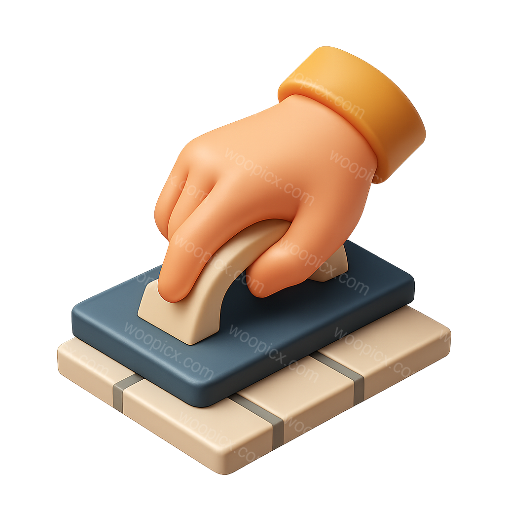 A 3D icon depicting a hand holding a grout float, showcasing a realistic three-quarter view with a transparent background. The design emphasizes volumetric and isometric elements.