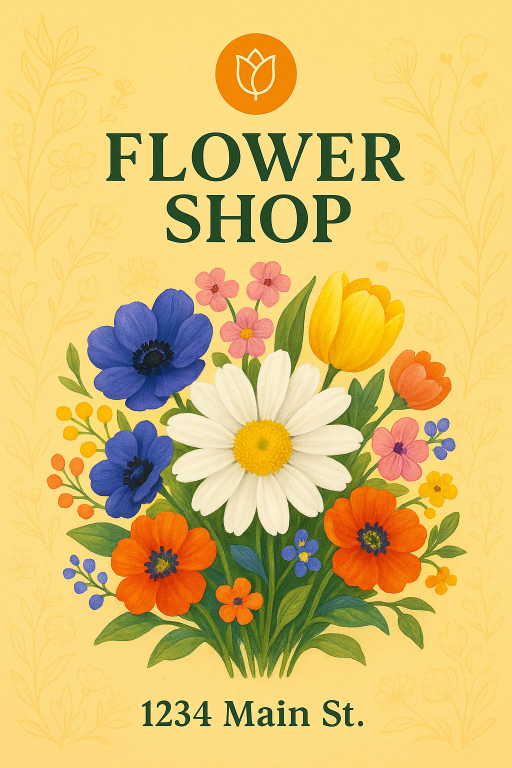 Charming Flower Shop Promotional Graphic with Floral Illustration