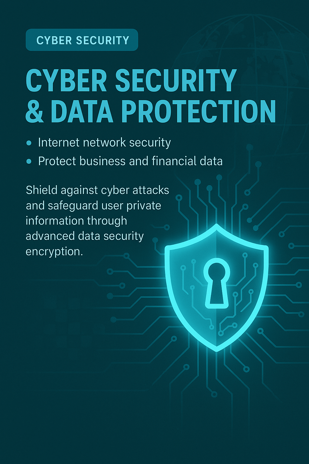 /Collection: /by davooda/Type: PNG/Informative graphic focusing on cyber security and data protection, featuring a shield icon with digital elements, ideal for tech-related presentations or educational materials.