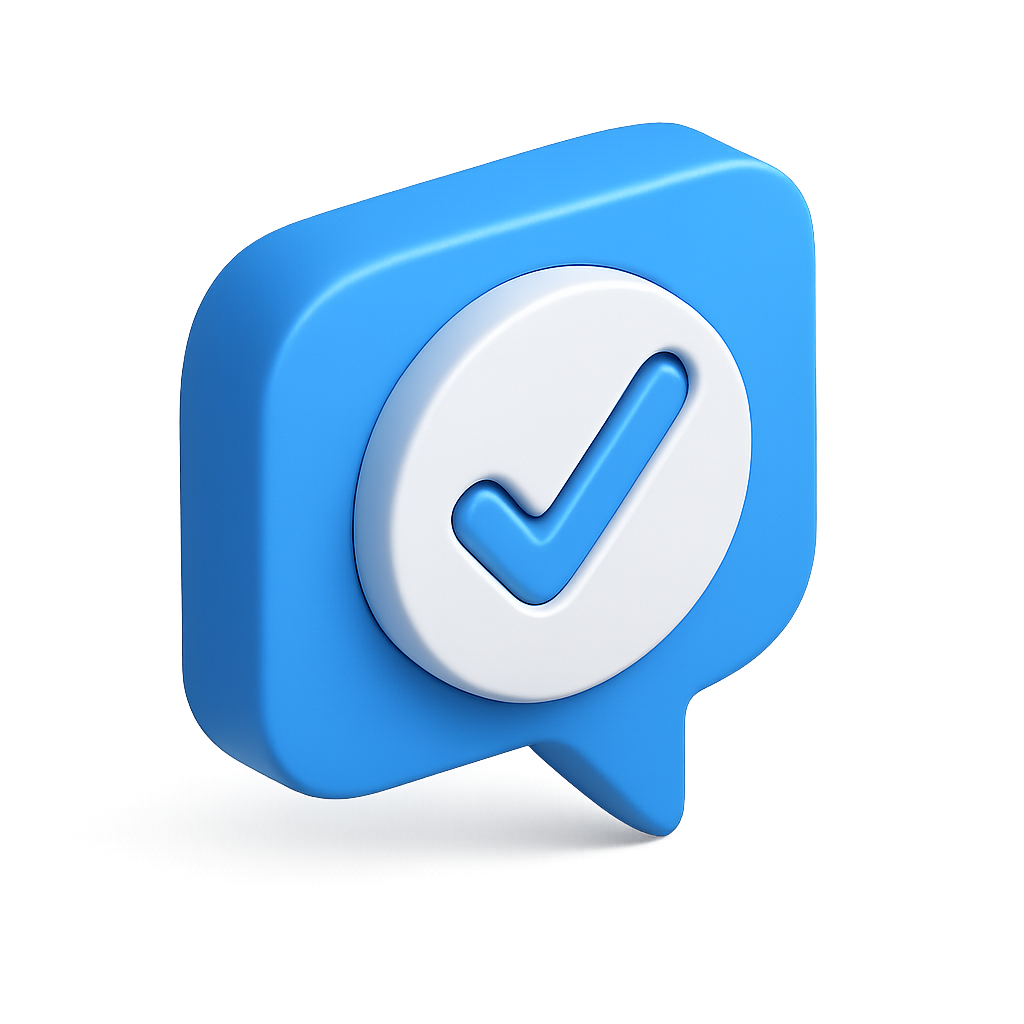 3D Checkmark Icon with Text Bubble Design