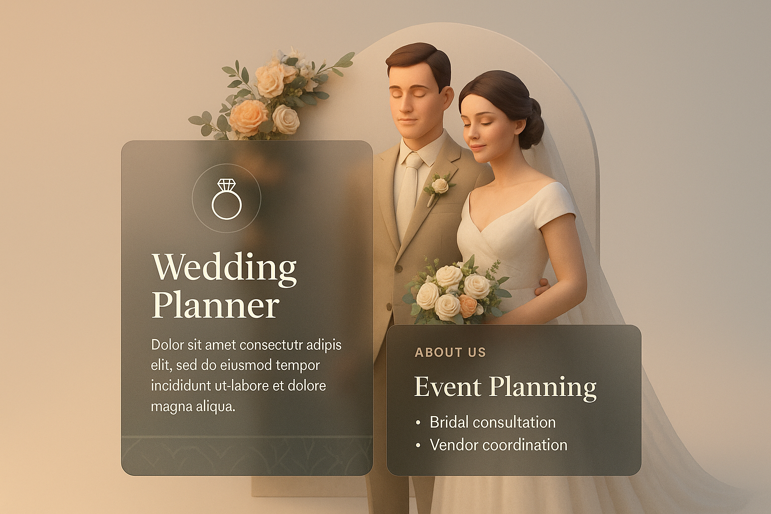Elegant Wedding Planner Web Page Design with 3D Elements