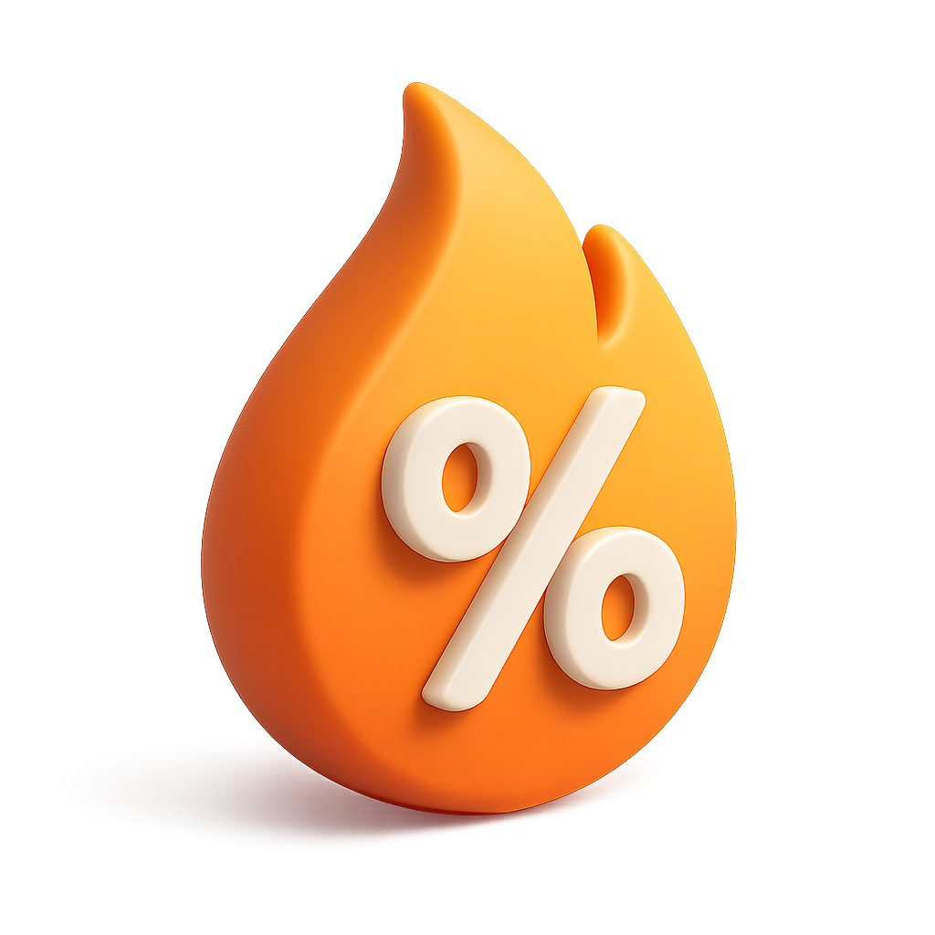 Stylish 3D Flame Icon with Percentage Symbol