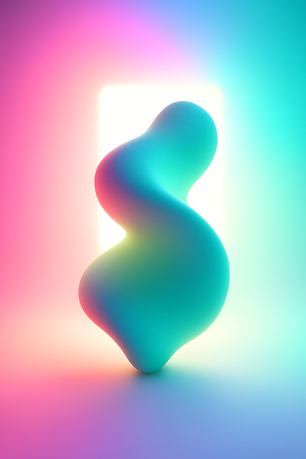 /Collection: /by davooda/Type: PNG/An abstract shape blending mint green and seafoam blue illuminated by a vibrant gradient background. The composition features soft curves and a luminous glow, creating a three-dimensional effect.