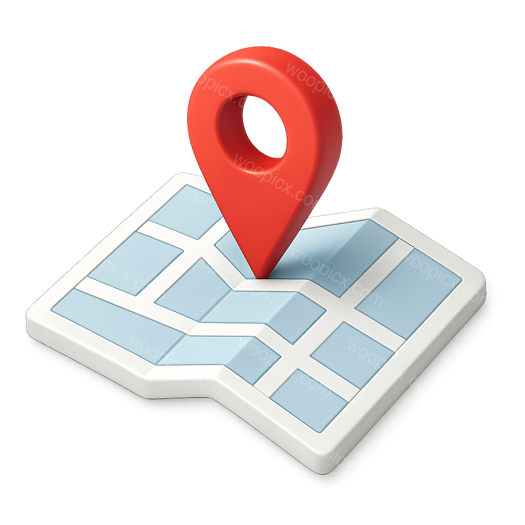 /Premium/Collection: /by davooda/Type: PNG/This image features a 3D isometric map with a prominent red location marker. The design showcases a stylized map layout with blue sections, emphasizing a modern look.