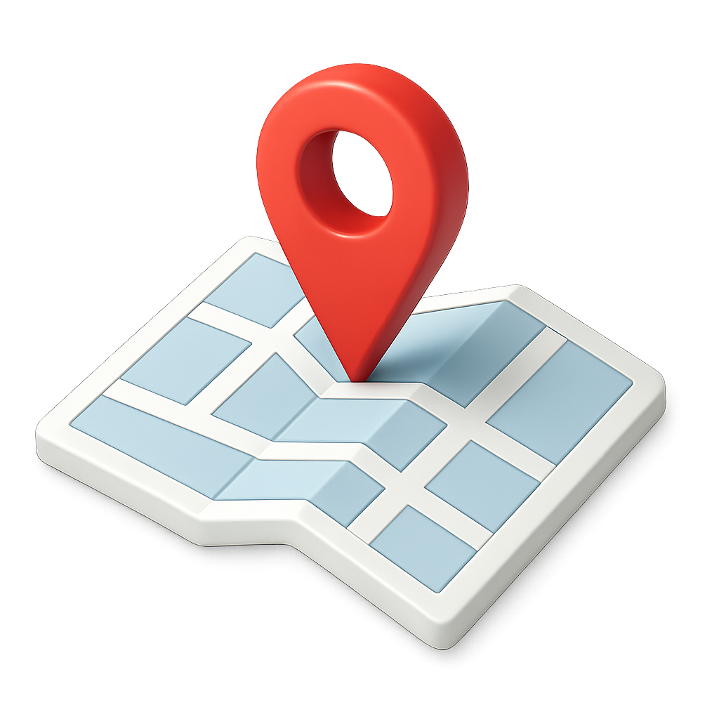 /Collection: /by davooda/Type: PNG/This image features a 3D isometric map with a prominent red location marker. The design showcases a stylized map layout with blue sections, emphasizing a modern look.