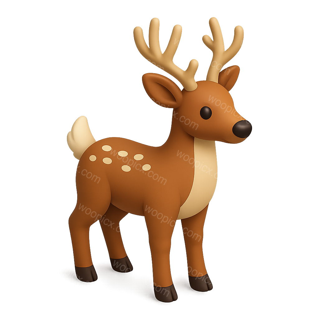 /Premium/Collection: /by davooda/Type: PNG/A charming 3D illustration of a white-tailed deer, featuring a playful design with antlers, a brown and cream color palette, and a soft volumetric glow against a gradient background.