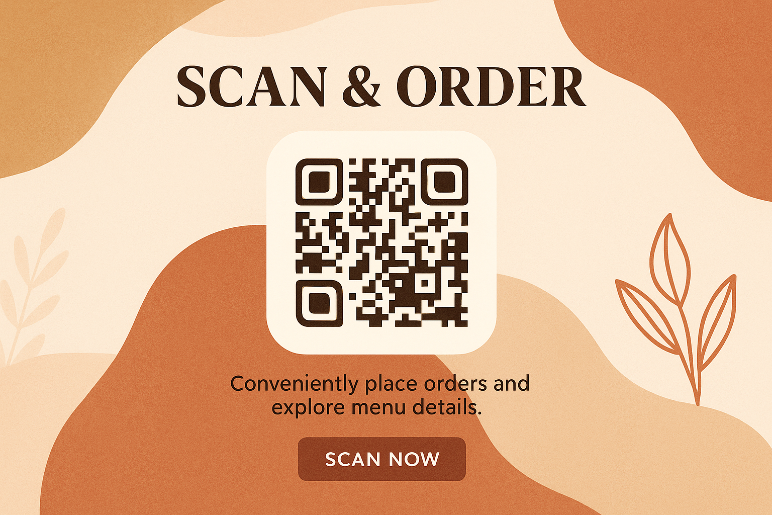 /Collection: /by davooda/Type: PNG/A visually appealing boho-style poster featuring a QR code for scanning and ordering. The design includes layered elements and a warm color palette, ensuring good readability.