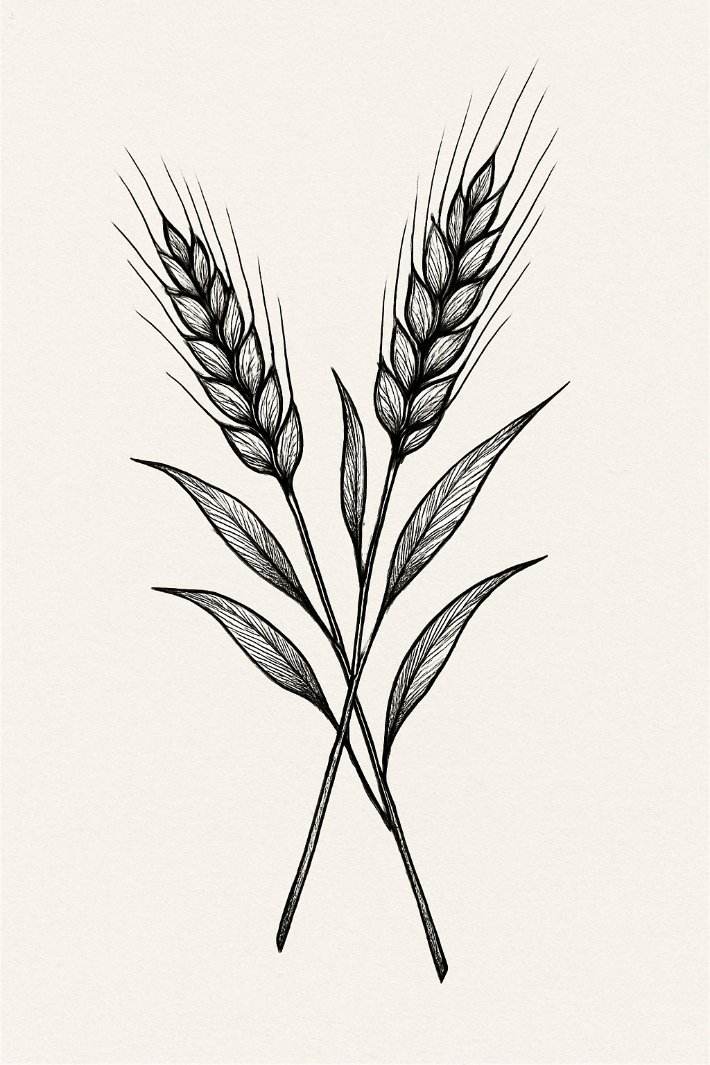 Illustration of Wheat Stalks in Detailed Line Art Style