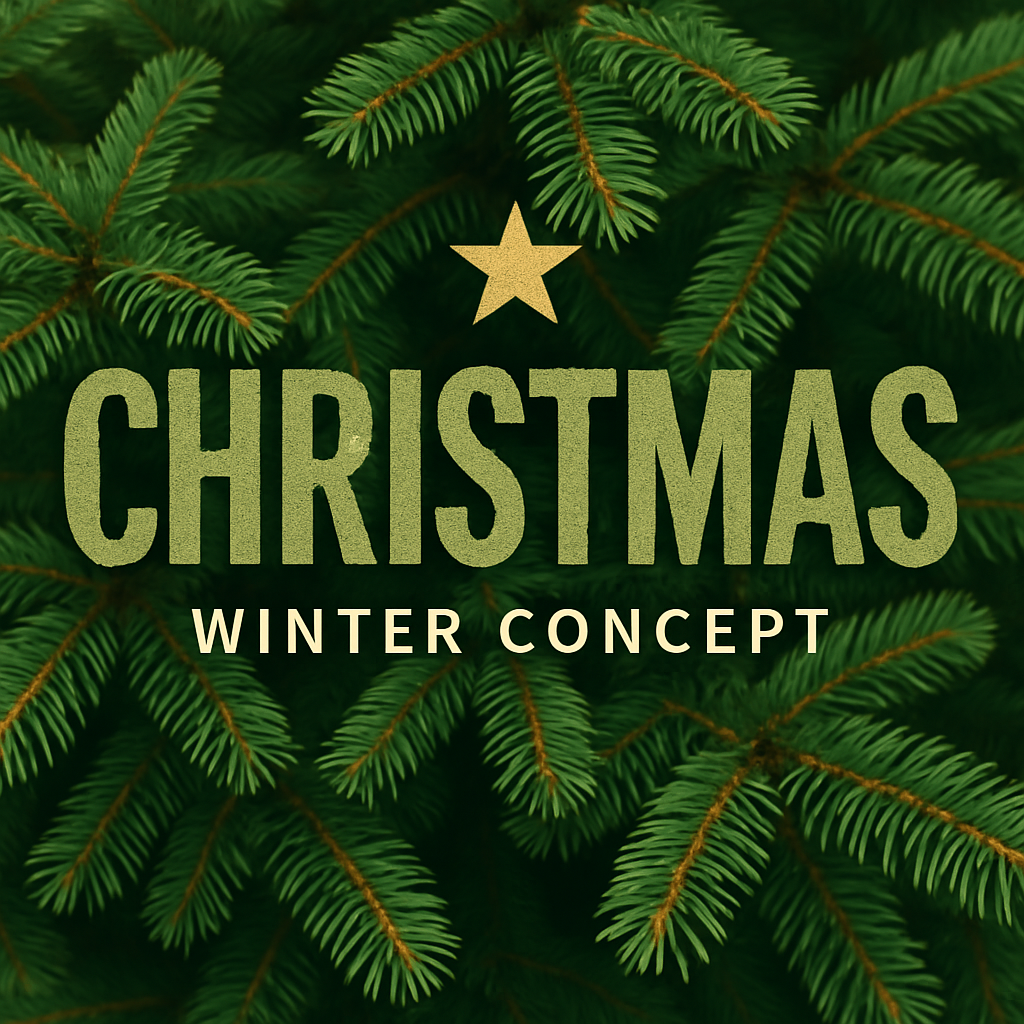 Vibrant graphic showcasing a Christmas theme with text overlay against a backdrop of evergreen branches, ideal for holiday promotions or seasonal marketing.