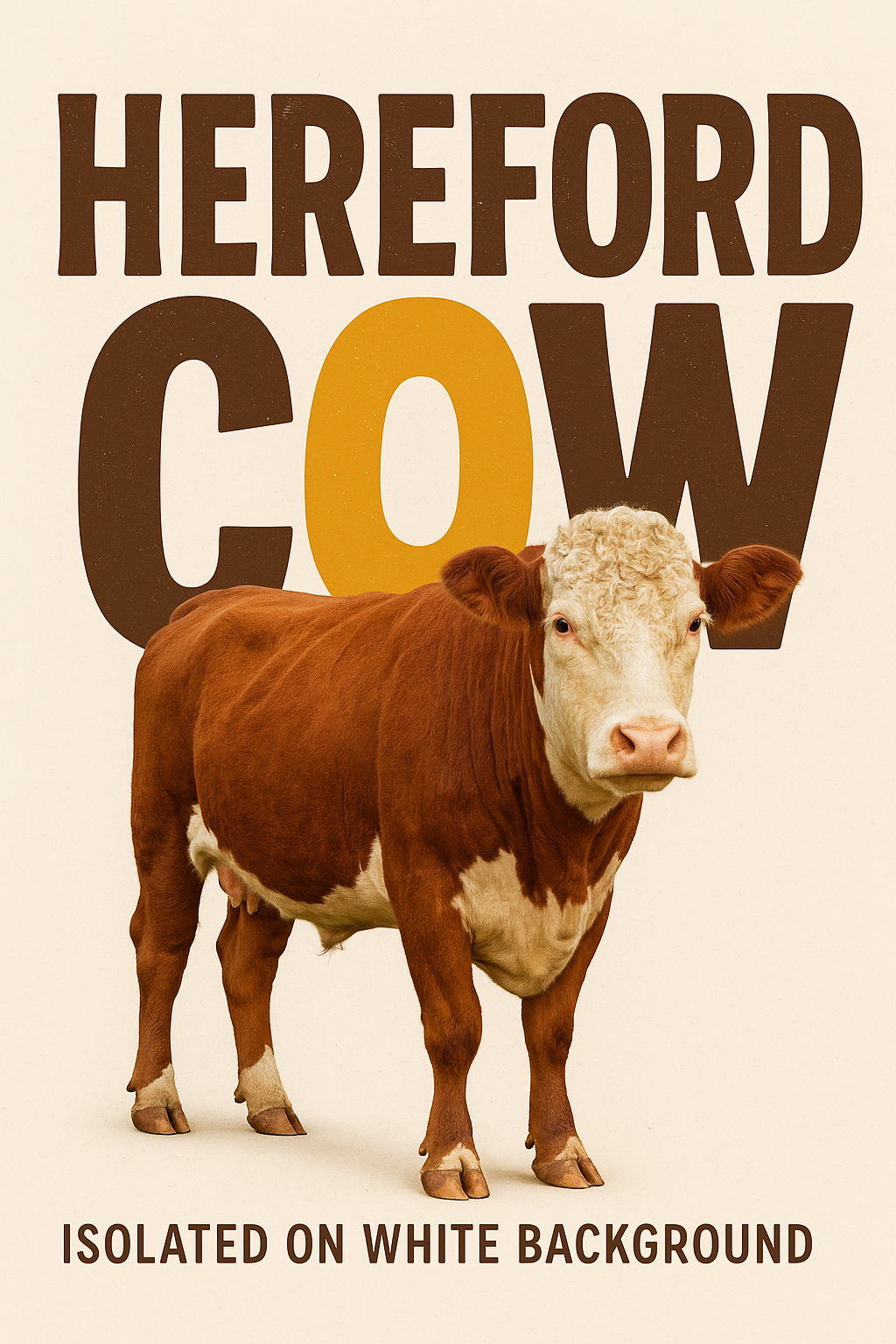 A detailed illustration of a Hereford cow set against a clean white background, ideal for agricultural themes, educational content, or livestock marketing.