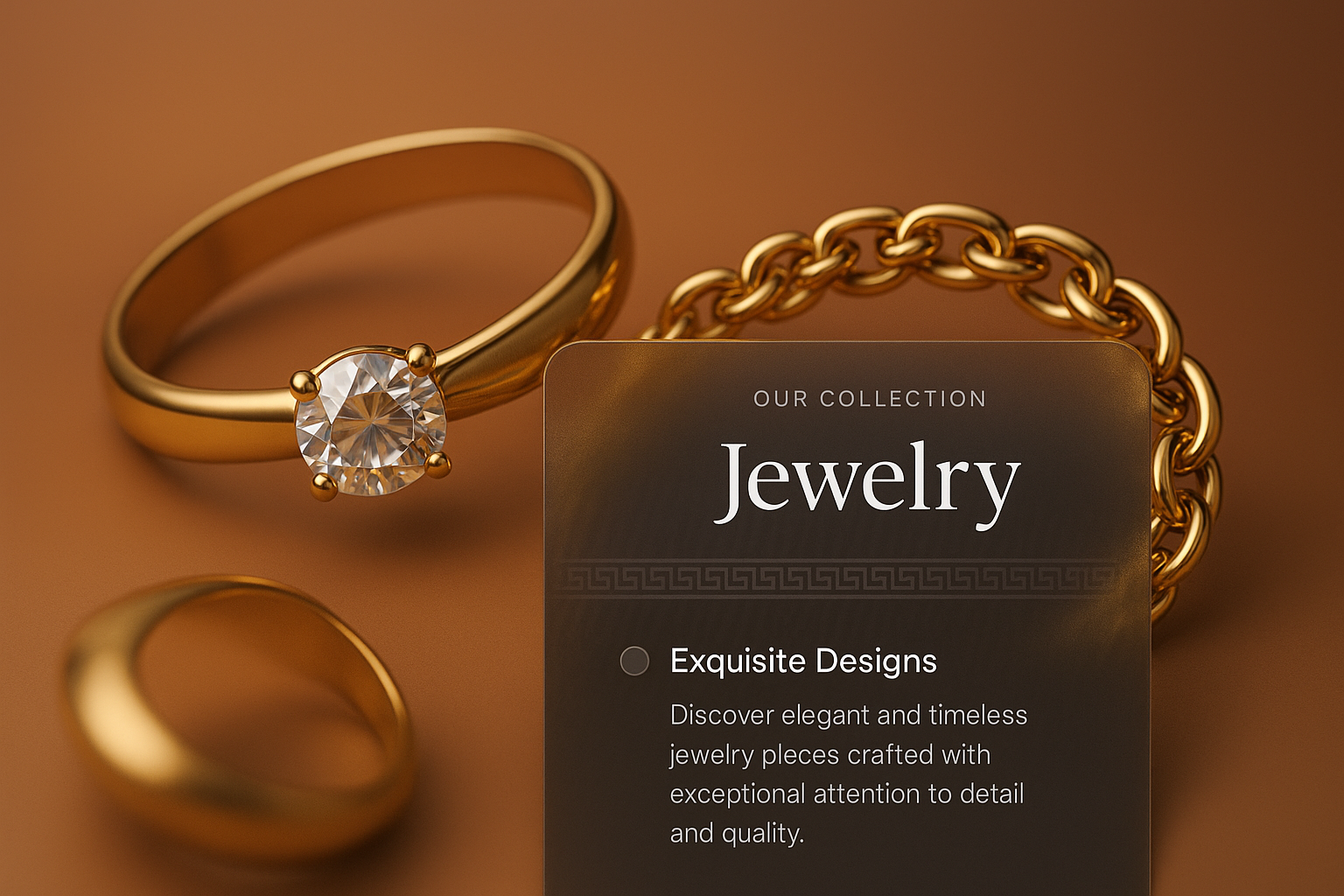 Elegant 3D Jewelry Collection Display with Text Overlay