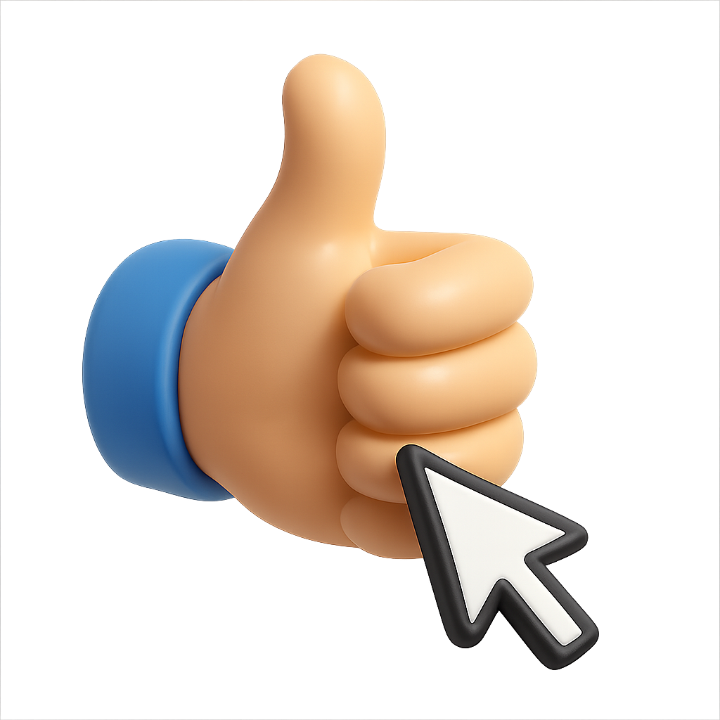 3D Thumbs Up Icon with Cursor in Isometric View