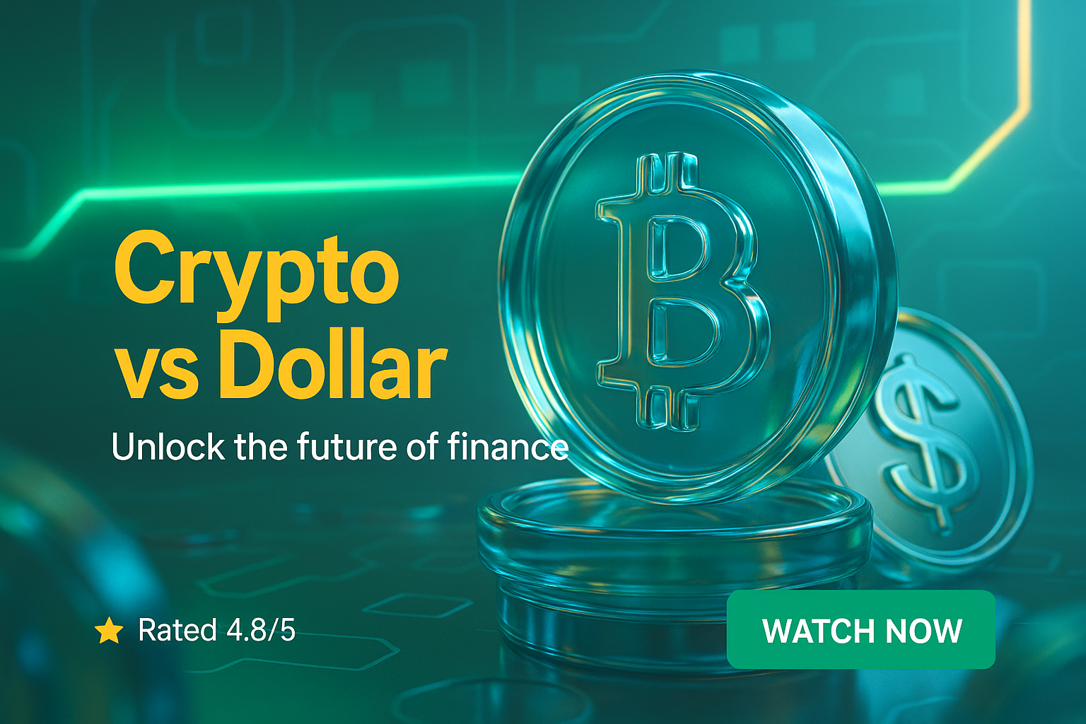 Futuristic Financial Comparison Graphic Featuring Cryptocurrency and Dollar