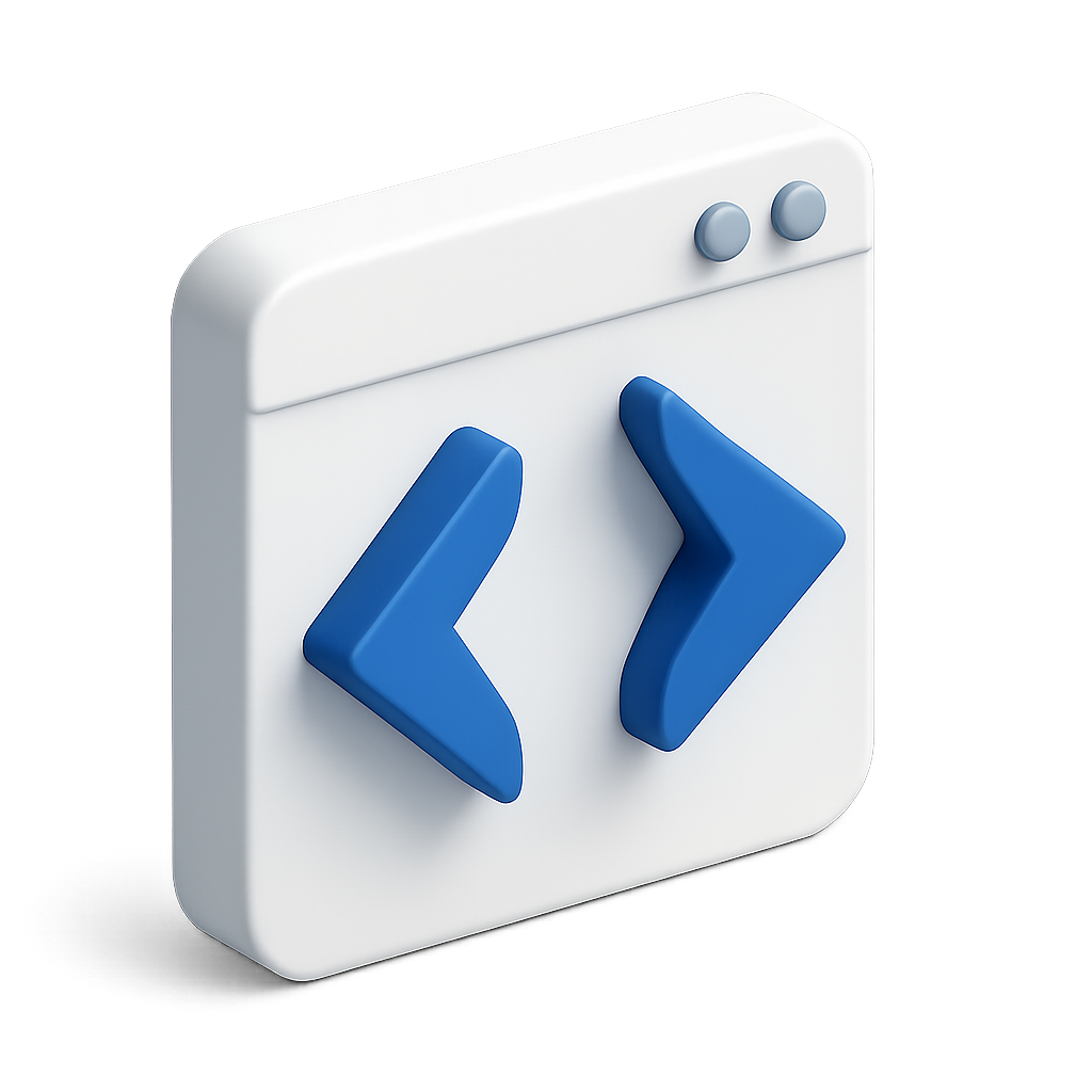 Stylized 3D Code Icon with Checkmark and Blue Background
