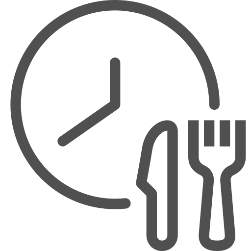 outline simple icon: clock, fast, food delivery, fork, knife