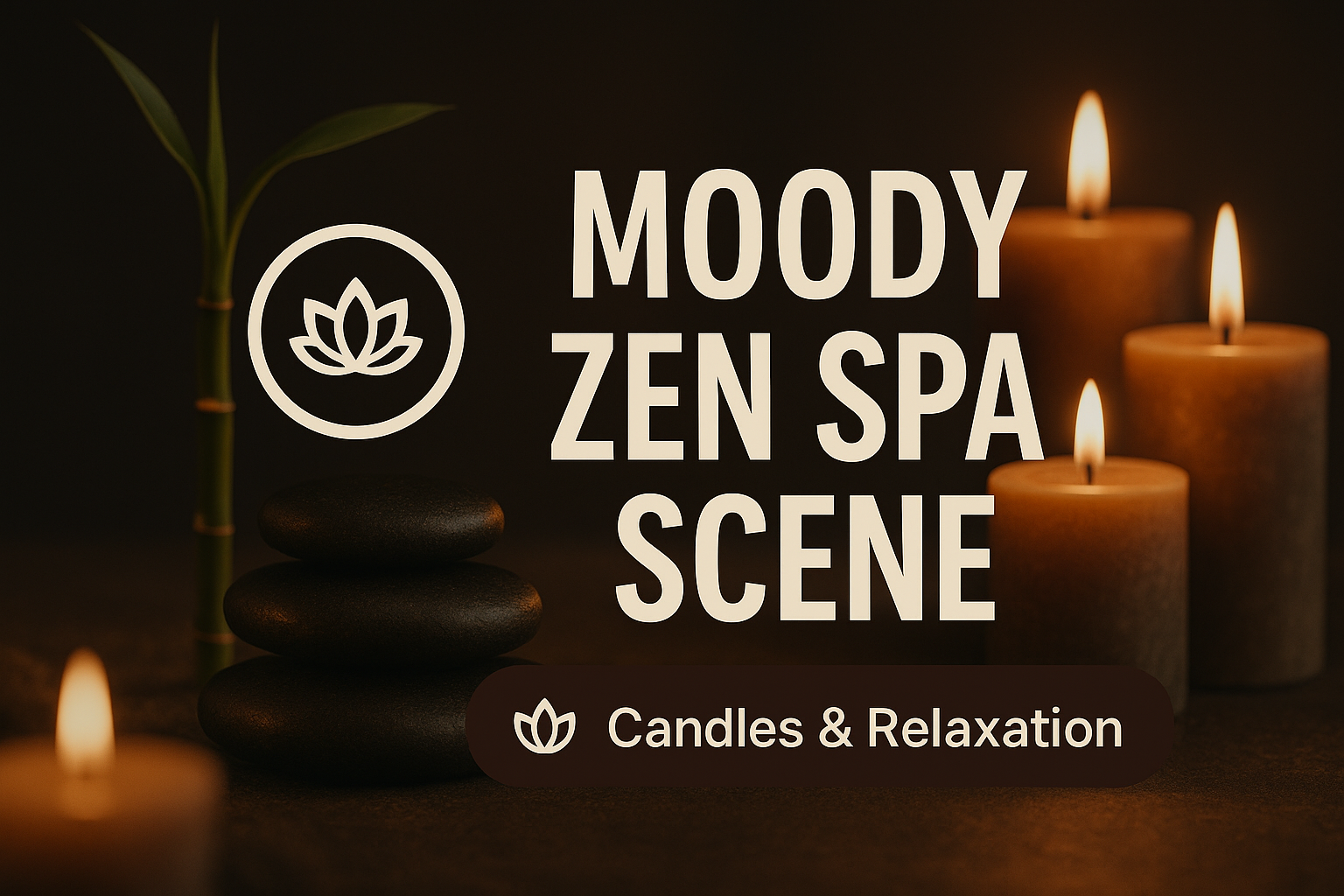 A tranquil spa scene showcasing candles, stones, and bamboo, designed for relaxation and wellness promotion. Ideal for wellness brands and spa marketing.