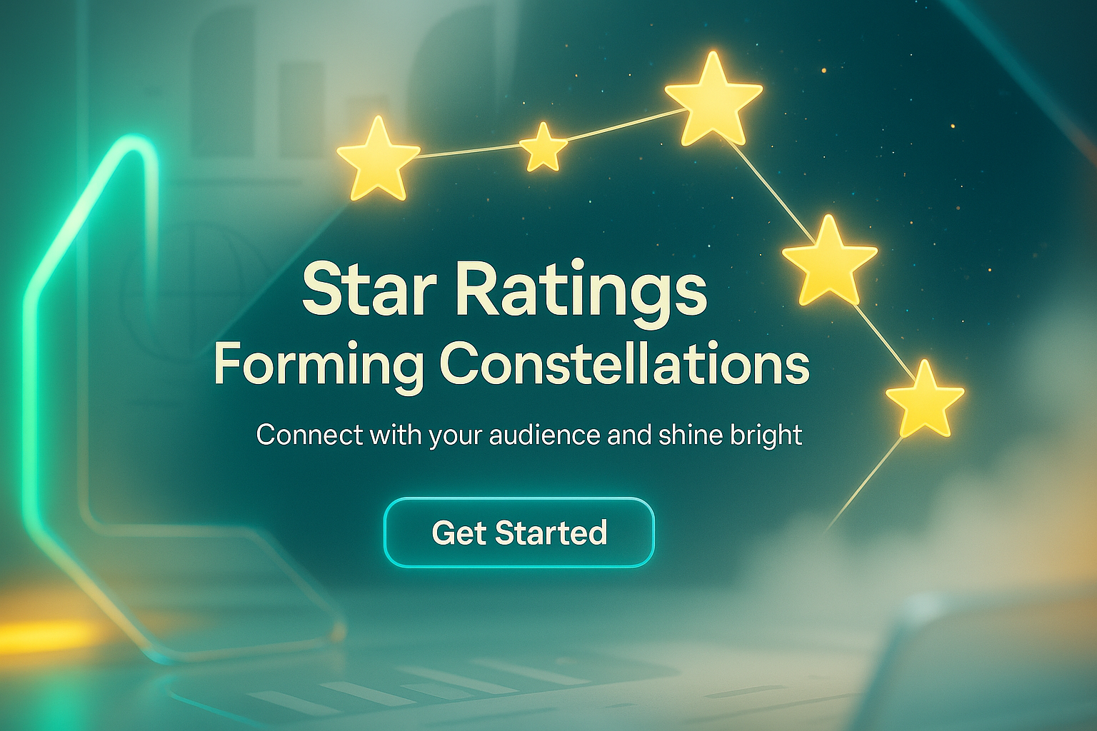 A visually appealing digital banner illustrating the concept of star ratings forming constellations, designed to attract users to connect with their audience. Ideal for social media or website use.