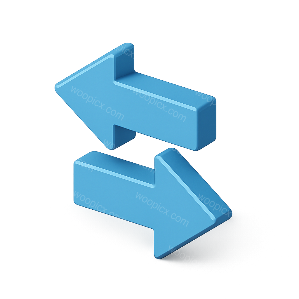 A stylized 3D icon featuring two blue arrows moving in opposite directions, designed with a transparent background and a three-quarter isometric perspective.
