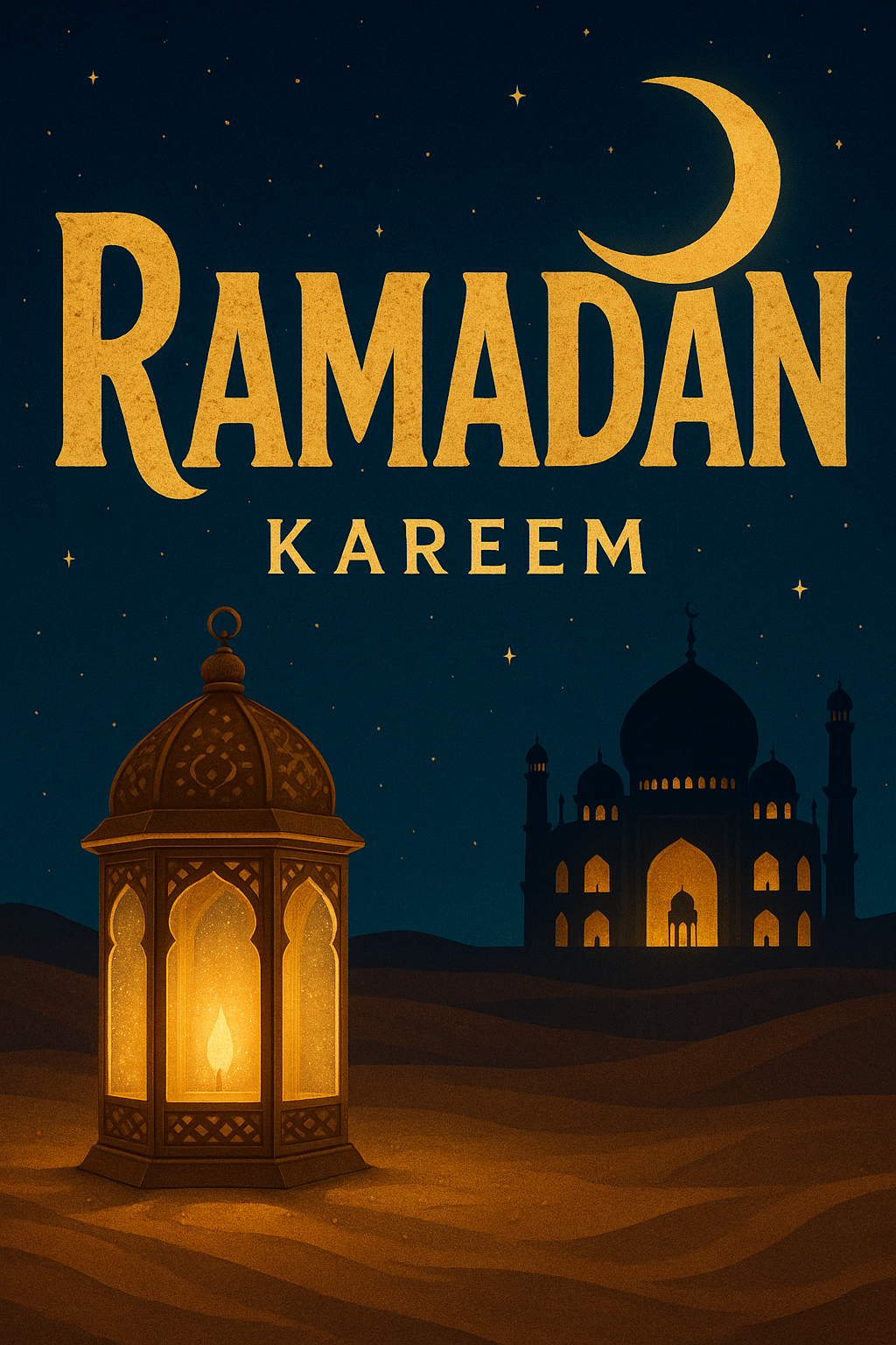 Ramadan Celebration Graphic Featuring Lantern and Mosque