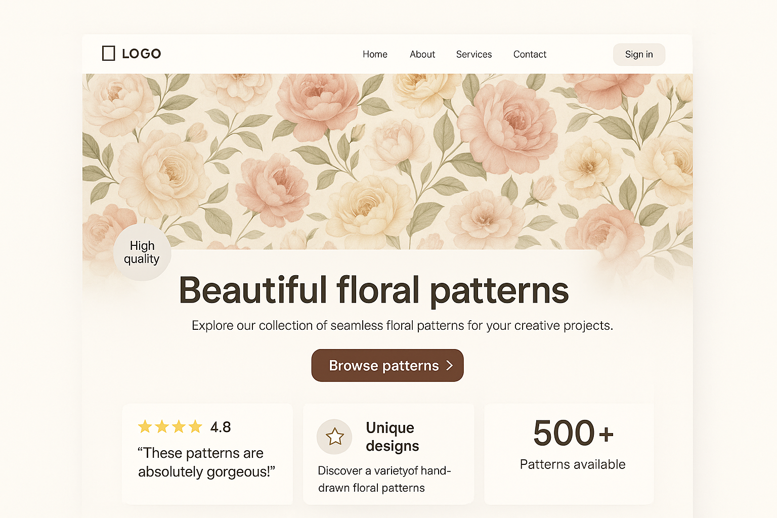 Modern Landing Page Design with Floral Patterns