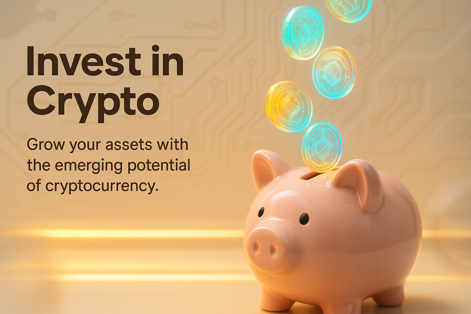 Promotional Cryptocurrency Investment Graphic with Piggy Bank