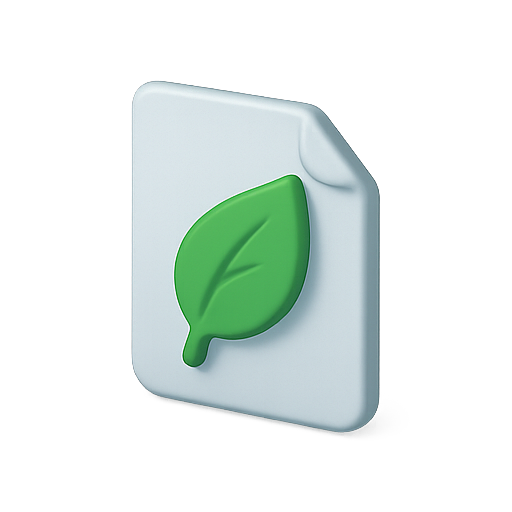A modern and minimalist icon depicting a leaf on a paper-like background, ideal for eco-friendly or sustainability-themed applications.
