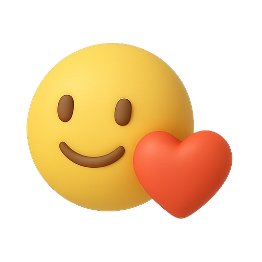 A vibrant 3D emoji featuring a smiling face and a red heart, perfect for expressing love and positivity in digital communication.