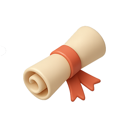 A stylized 3D icon of a rolled diploma tied with a ribbon, representing education and achievement. This graphic is perfect for educational platforms, graduation announcements, or academic-related content.