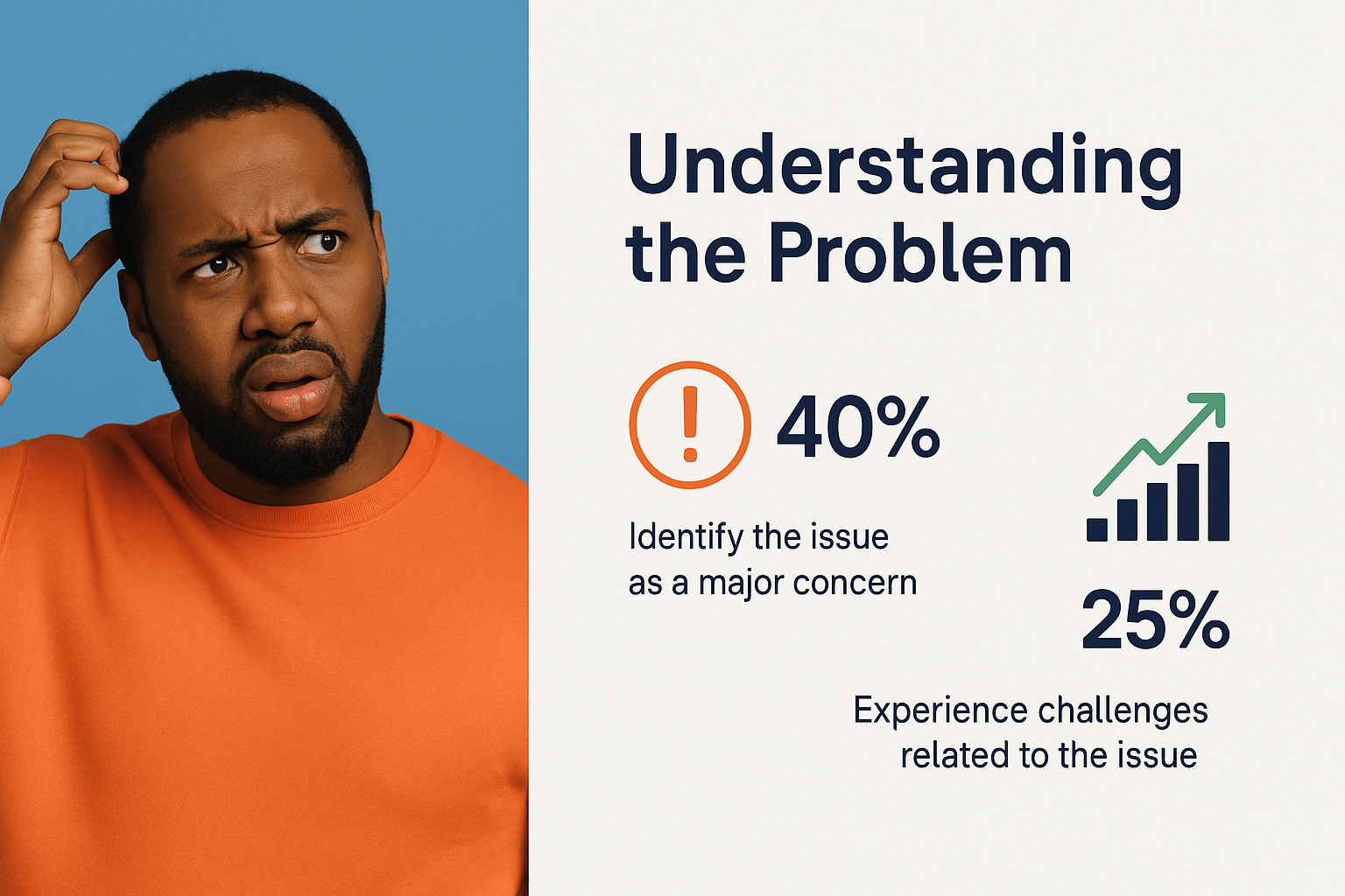 /Collection: /by davooda/Type: PNG/Informative infographic featuring key statistics on problem awareness and experience. The design uses bold typography and icons to convey important data clearly.