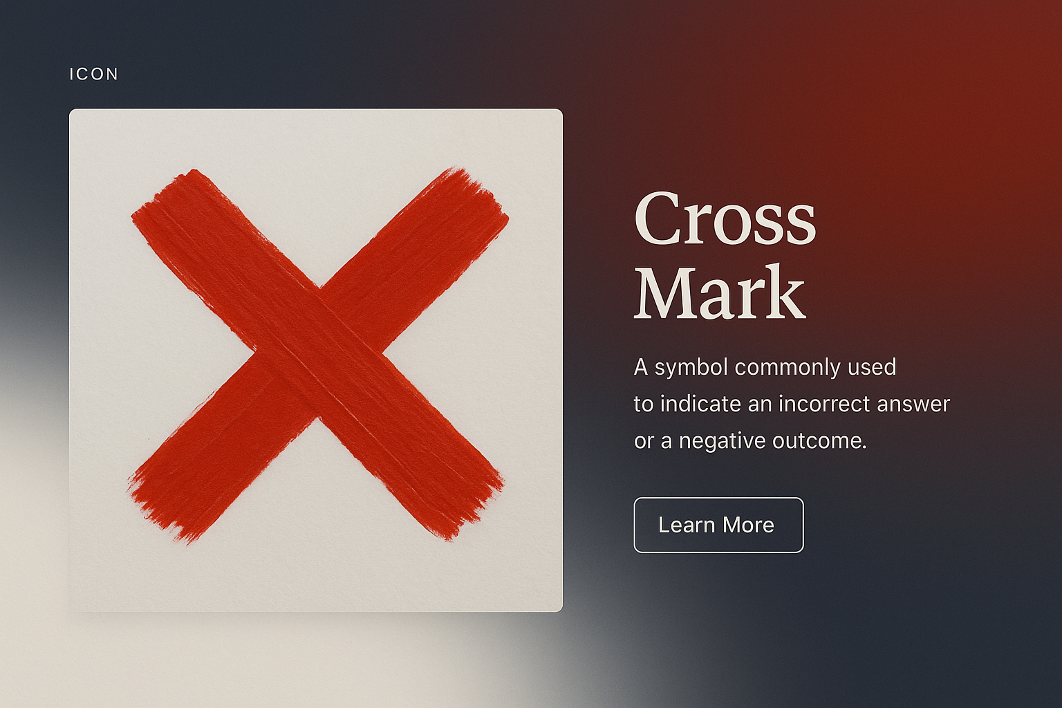 This image showcases a cross mark icon, symbolizing an incorrect answer, alongside a brief text block and a call-to-action button. The design features a two-color gradient background, enhancing the visual appeal.