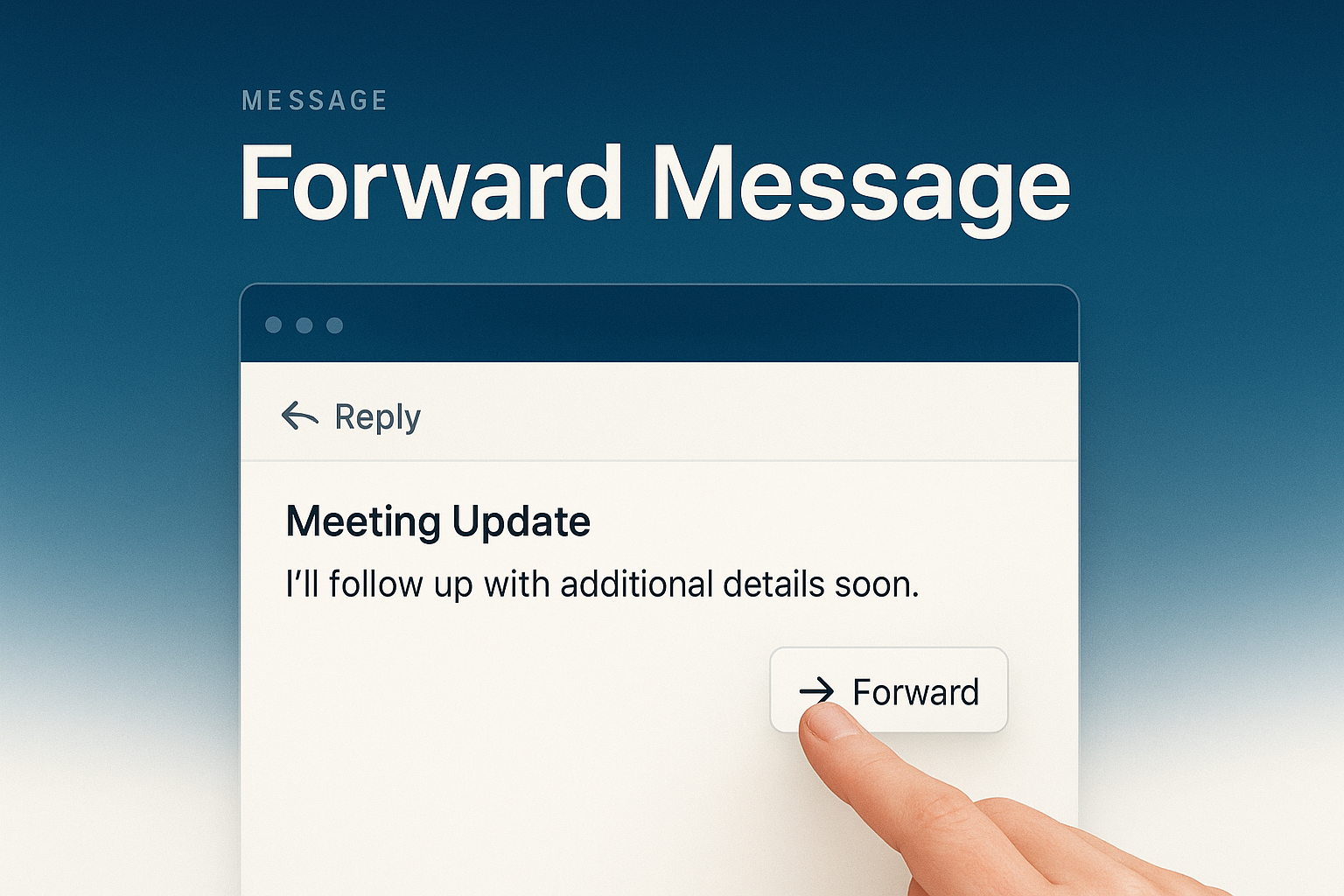 The image showcases a sleek web design featuring a forward message interface. It has a gradient background transitioning from dark blue to white, with clear text and an action button.