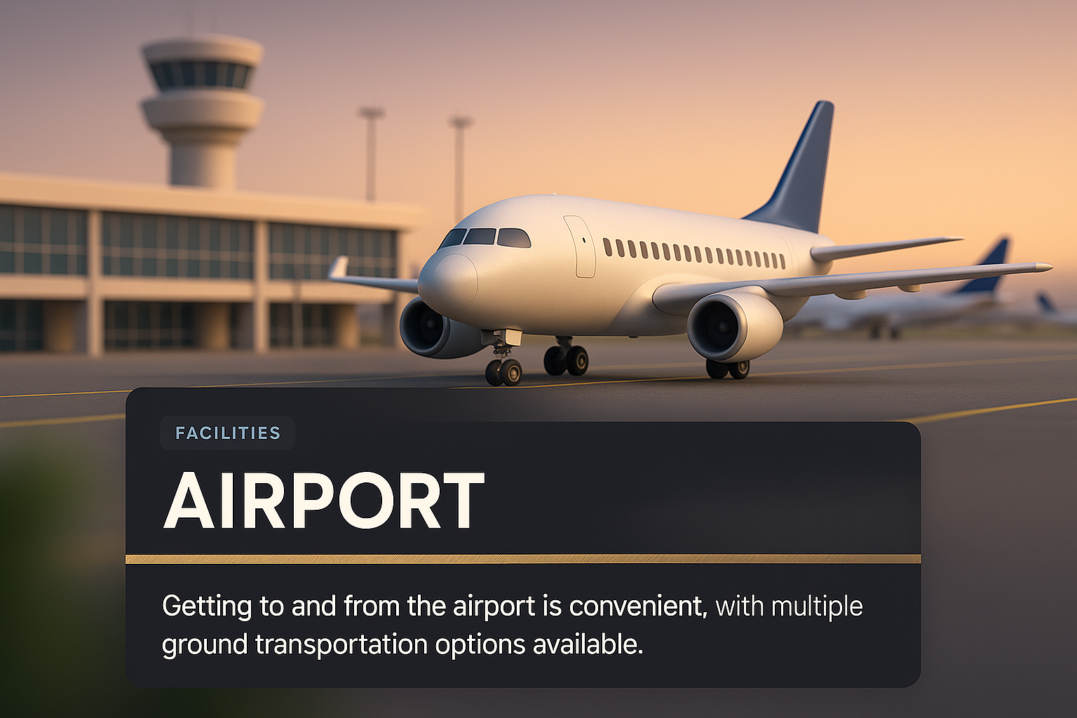 /Collection: /by davooda/Type: PNG/A visually appealing 3D airport illustration featuring a modern aircraft on the runway. The design includes integrated information blocks with a dark overlay, enhancing the airport's facilities.