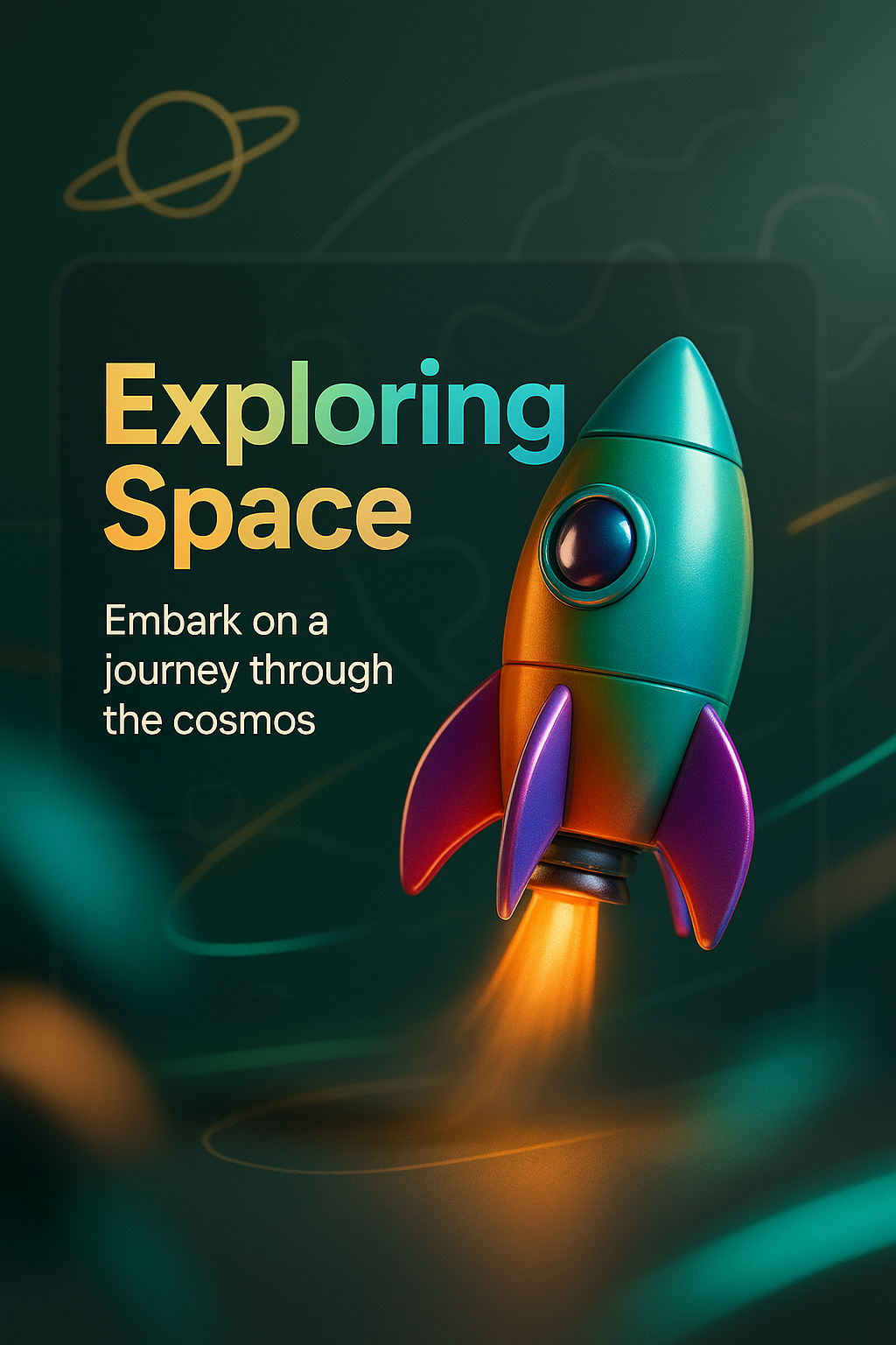 /Collection: /by davooda/Type: PNG/Vibrant digital illustration featuring a rocket launching into space, designed to inspire curiosity about the cosmos. Ideal for educational content and promotional materials.