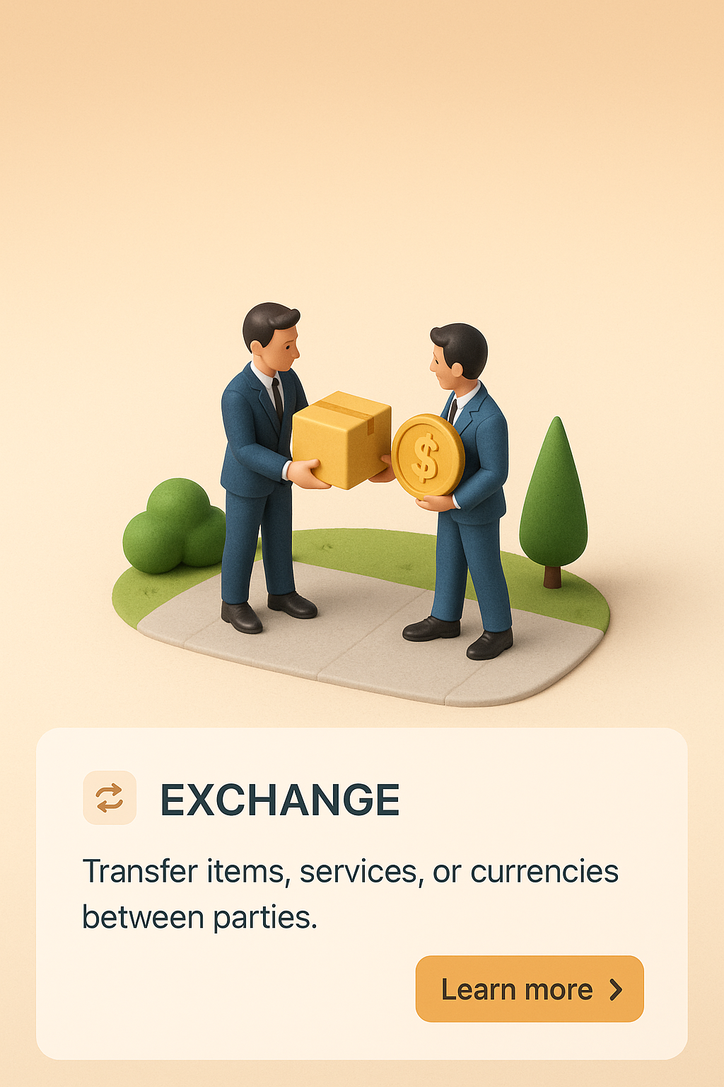 Colorful 3D Barter Icon Featuring Hands and Fruits