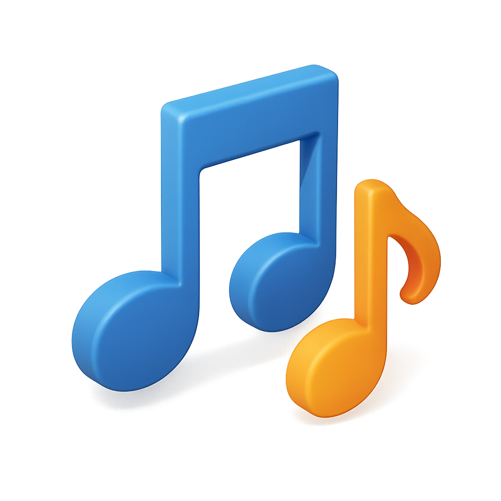 Vibrant 3D Musical Notes Icon on Transparent Background