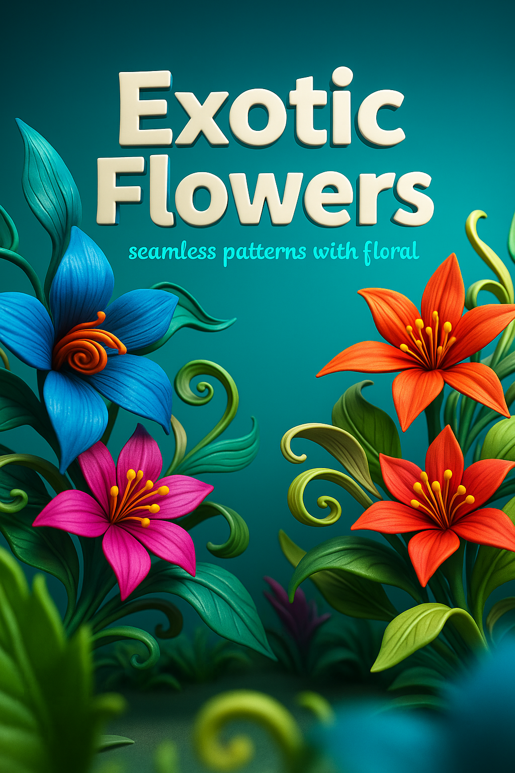 Vibrant 3D Exotic Flowers with Seamless Patterns